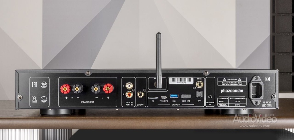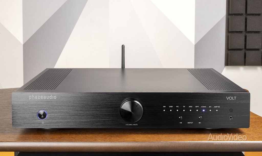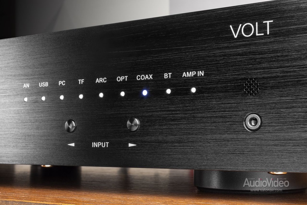 Усилитель Volt достаточно компактен — высота корпуса 83 мм, масса 5,5 кг, но начинка вполне серьёзная. Оконечный усилитель класса АВ выдаёт 2 x 50 Вт на восьми омах и 2 x 80 Вт на четырёх при искажениях на 1 кГц не более 1%. Встроенный мультибитный дельта-сигма ЦАП MS4344 поддерживает PCM до 24 бита/192 кГц, а встроенный модуль Bluetooth — версии 5.0.