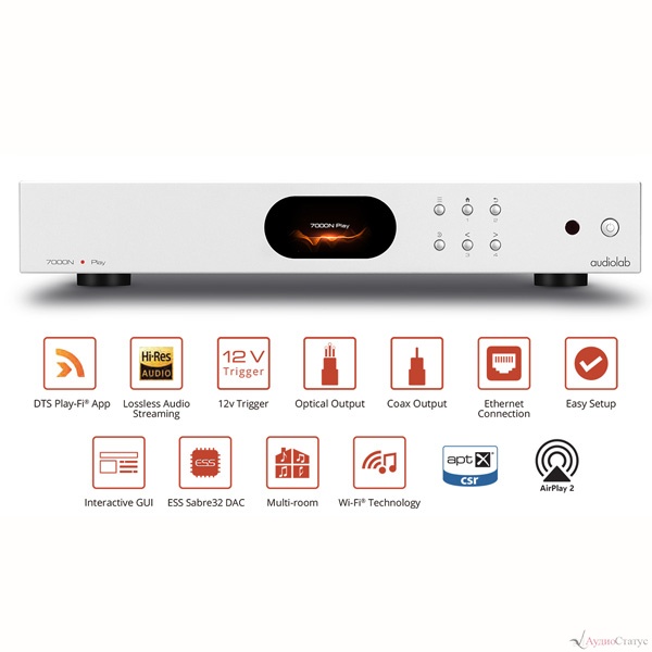 Обеспечивая беспроводную потоковую передачу звука высокого разрешения на любую домашнюю аудиосистему, 7000N Play еще больше расширяет многоформатную, многоплатформенную, совместимую с несколькими источниками систему DTS Play-Fi, теперь с совместимостью Apple AirPlay 2.