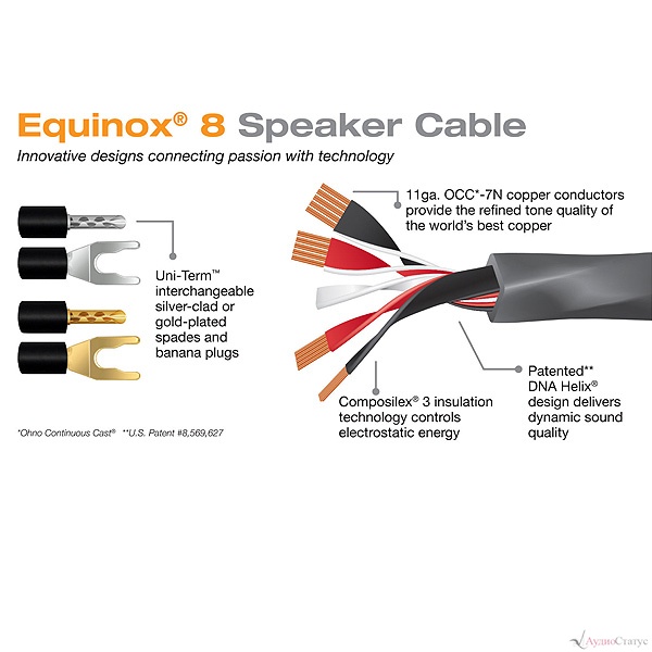 Качество звука профессионально установленных домашних кинотеатров достигло такого уровня, что слышимые потери стандартных кабелей для колонок могут действительно ограничить их производительность. Лучший способ услышать эти потери — сравнить короткие отрезки стандартного кабеля с 10-20 метрами, которые обычно используются для прокладки в стенах. Короткие соединения звучат значительно лучше, с большей ясностью и динамичным ударом. Кабели и разъемы для колонок Wireworld DNA разработаны для обеспечения звука, максимально приближенного к отсутствию кабеля (прямое соединение) по ценам, которые подходят для широкого спектра установок.