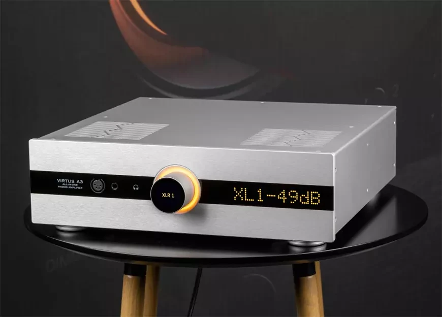 Словацкая компания Canor Audio представила гибридный интегральный усилитель Virtus A3, выполненный в концепции «двойное моно» и оснащённый аналоговыми и цифровыми входами. Предварительный каскад усиления новинки выполнен на лампе E88CC в каждом канале предусилителя. Кроме того, Canor Virtus A3 оснащен 1,3-дюймовым сенсорным ЖК-экраном, что, по словам бренда, является важной отличительной особенностью модели. На передней панели устройства также имеются два разных разъёма для подключения наушников.