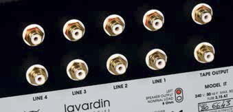 Такой же очевидный расчет на все фирменное прослеживается и в коммутации усилителя. Не слишком длинные разъемы RCA и акустические терминалы с пластиковыми накидными шайбами поставлены с расчетом на легкий кабель и нетолстую разделку. Кабели очень гибкие и тонкие, для них заявляется ≪ультрамалый эффект памяти≫ —в русле фирменной концепции. На черной фторопластовой оплетке закреплены ярлычки с указанием направления коммутации. Кабели приехали в лабораторию в забавных круглых жестяных коробках вроде тех, в каких в середине прошлого века перевозили кинопленку. Наконец, капитальная стойка сделана из толстенных листов клееной фанеры толщиной сантиметра четыре, не меньше, и снабжена ножками из массива дерева с металлическими конусами на основаниях; светлый шпон покрыт полуглянцевым лаком (кстати, для стоек фирма не приемлет никаких иных материалов, кроме дерева). Расстояние между полками может регулироваться: ножки свинчены из двух неравных частей, одна из которых снимается. Из таких блоков можно также делать модульные конструкции с большим количеством полок. Продуманность сопровождающих элементов и аксессуаров у Lavardin на высоте, хотя в сумме за комплект кабелей и стойку придется отдать сумму, равную примерно половине стоимости усилителя.